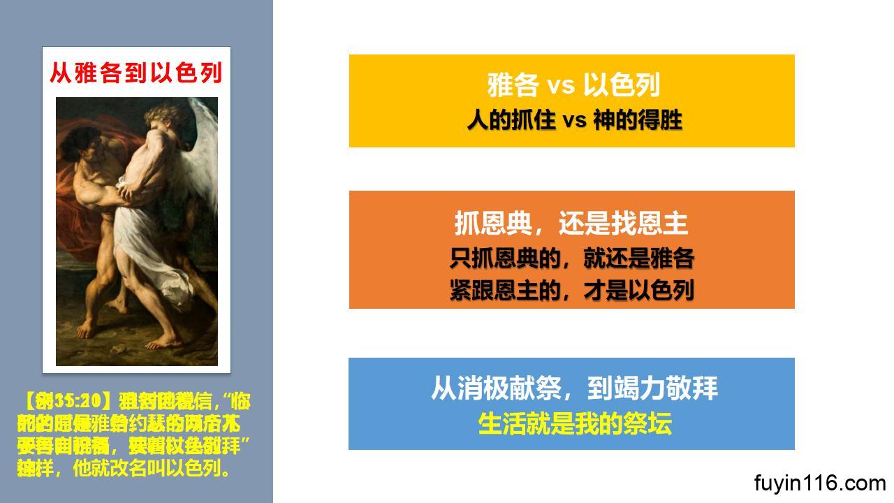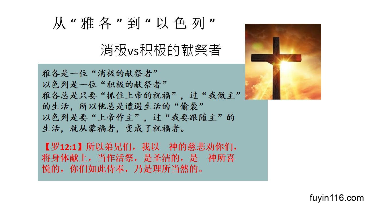 求主让每一个听众,从“雅各的祭坛”中得警戒,得安慰,得激励,生命更新,改变提升。