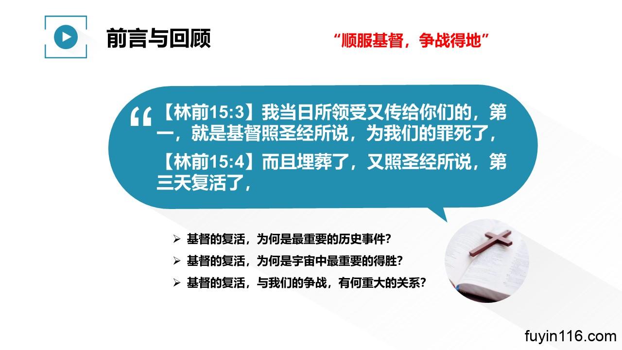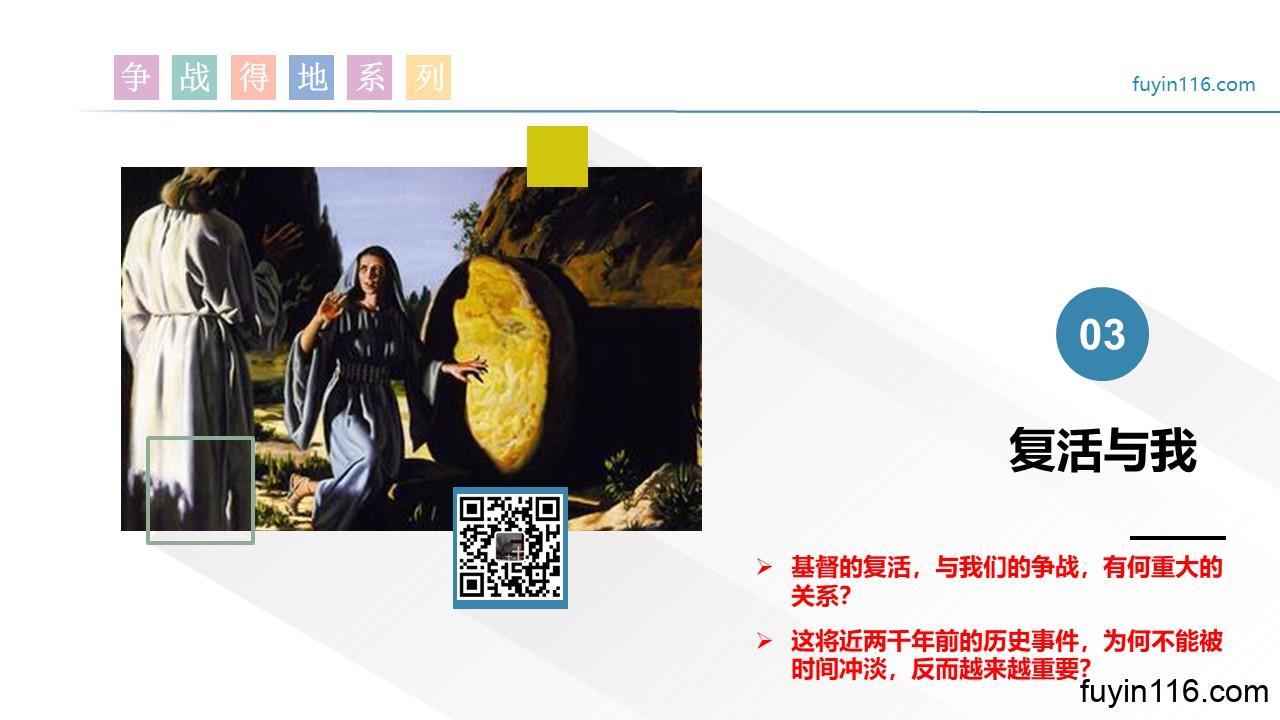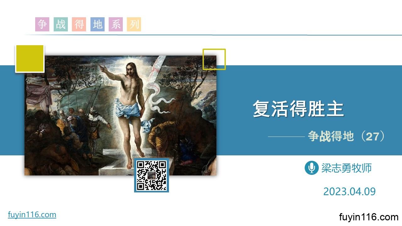 在4月9日,是复活节,我们继续《争战得地》系列的分享,第27讲: