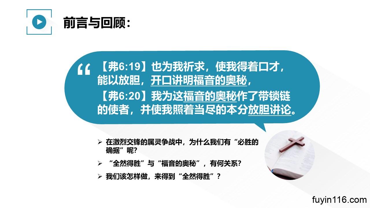 福音的奥秘,和“全然得胜”的确据有何关系?