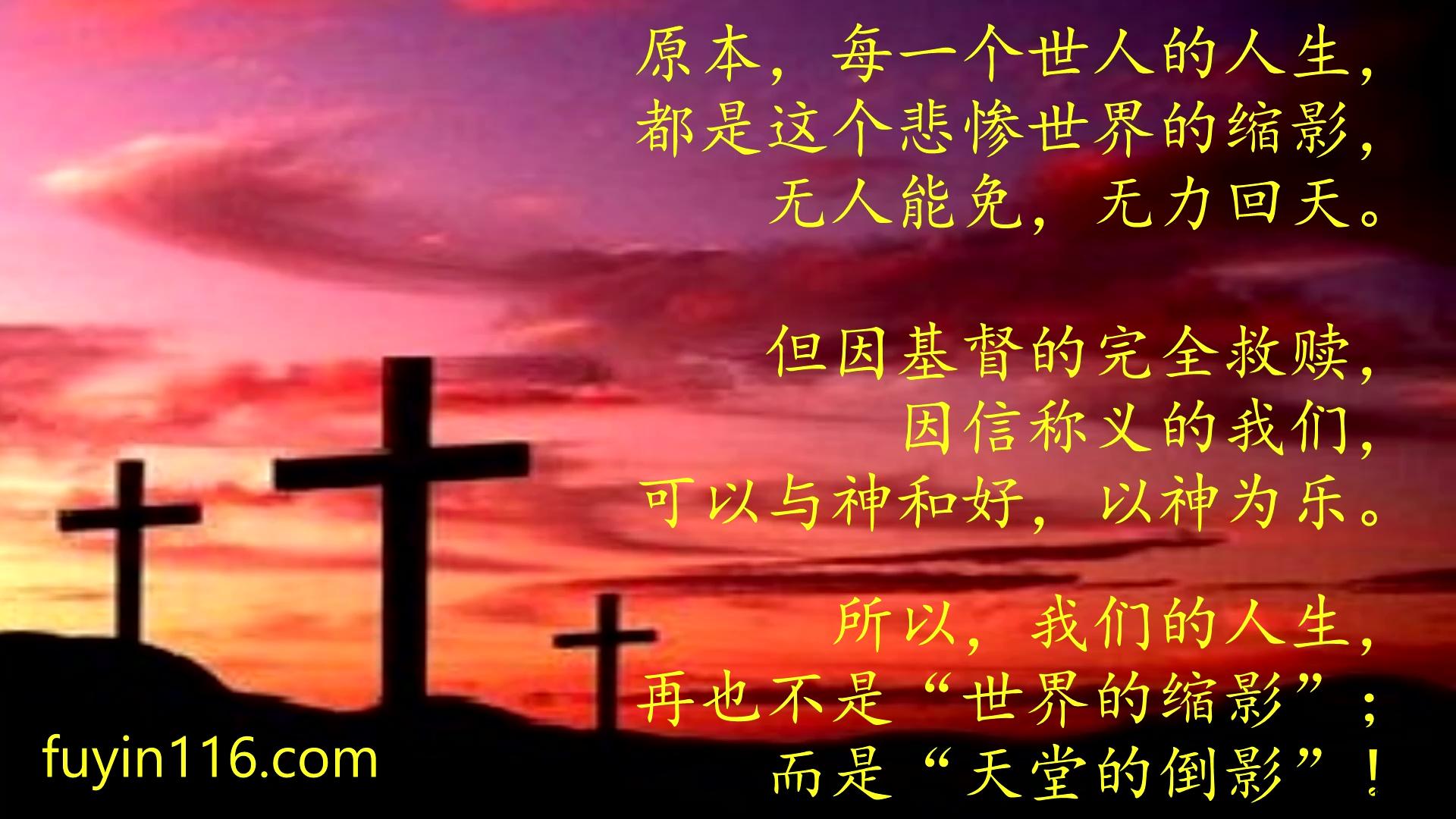 让我们谨记,我们越是珍惜基督的福音,爱基督的教会,传扬福音真理,我们的人生就是越清晰地成为“天堂的倒影”!