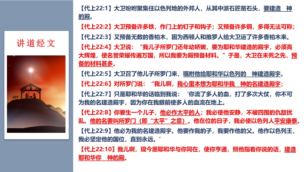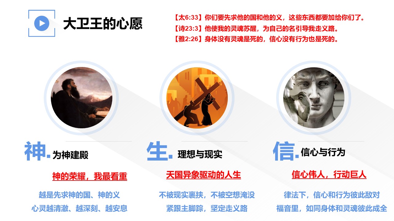 2024年的第一个主日,我们继续我们《圣殿系列》的分享,让我们聚焦到伟大的君王大卫身上。