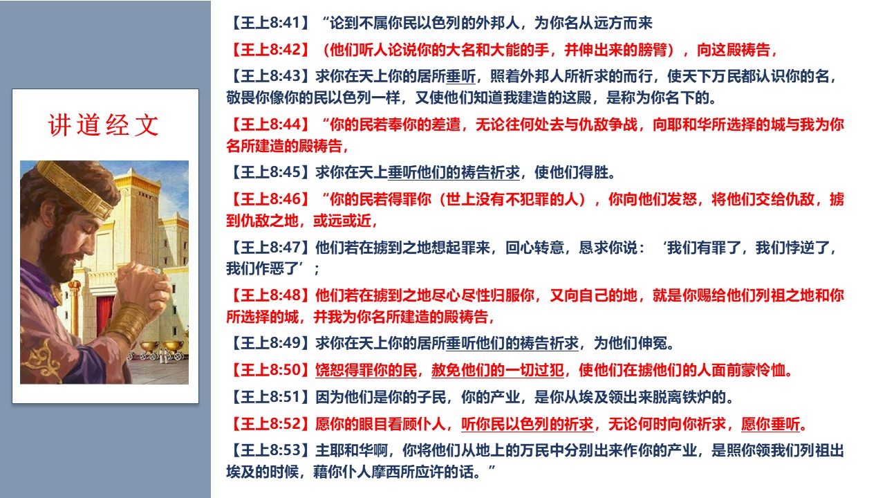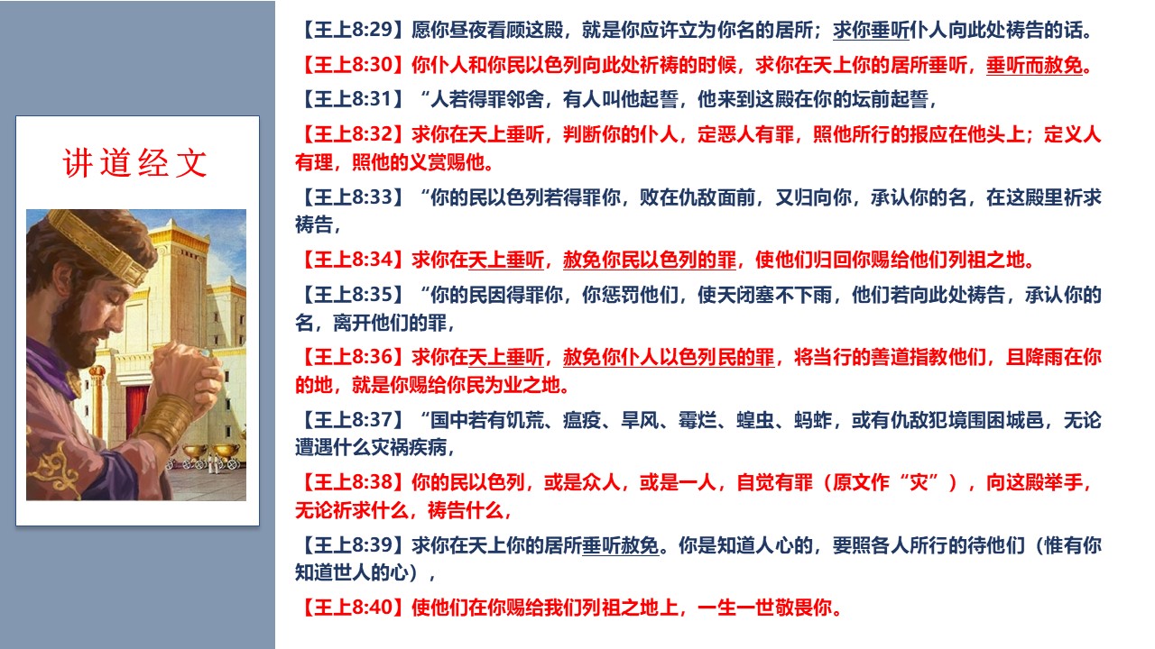 标签: 圣殿 所罗门 智慧 最重要的 祷告 福音 认罪与赦免 赦免