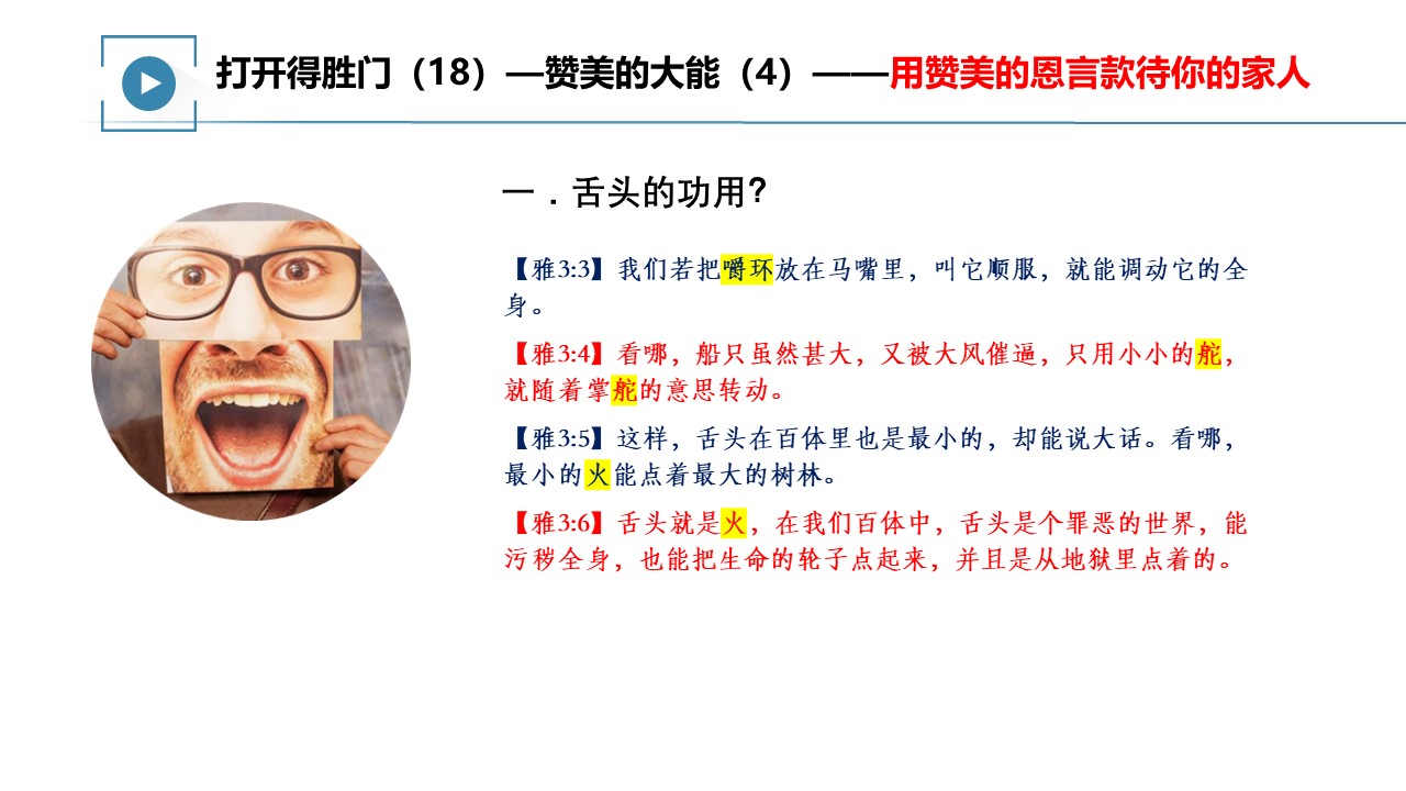 标签: 恩待家人 打开得胜门 教会与福音 舌头 赞美