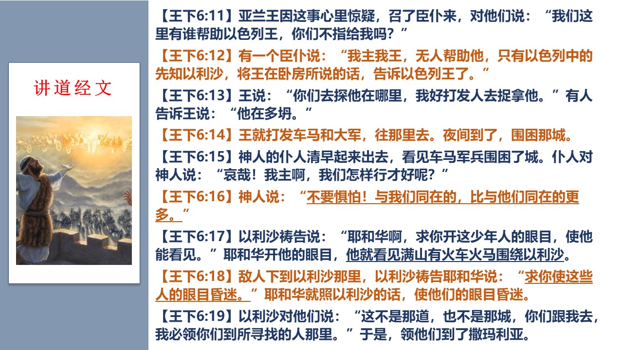 伟大的先知以利沙,曾经和他的仆人,两个人俘虏了亚兰人的一支大军。
