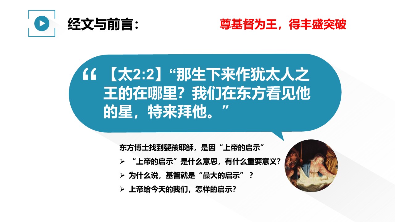 东方博士找到婴孩耶稣,是因“上帝的启示”。