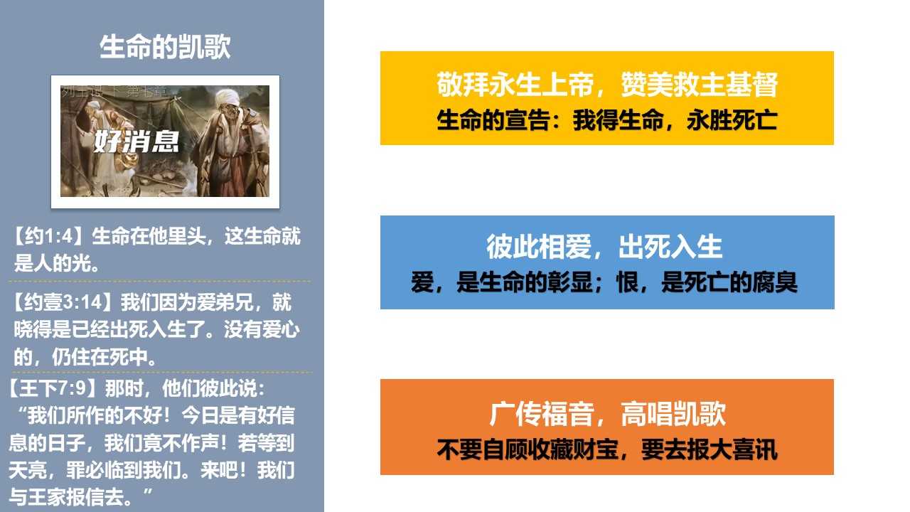 让我们更认识福音的大能,更注重与主同行、与神相交的生命建造,更勇敢为主作见证。