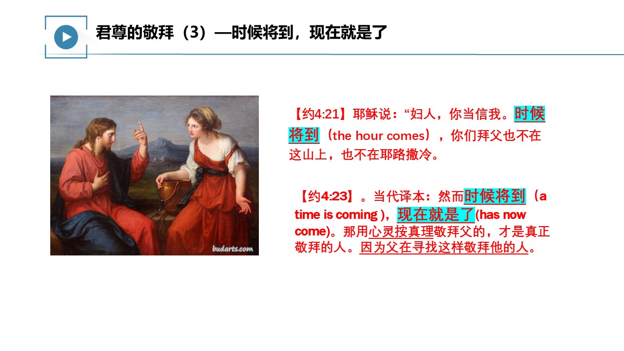 主耶稣论到敬拜时说的“时候将到,现在就是了”,这句话的深刻内涵是什么?