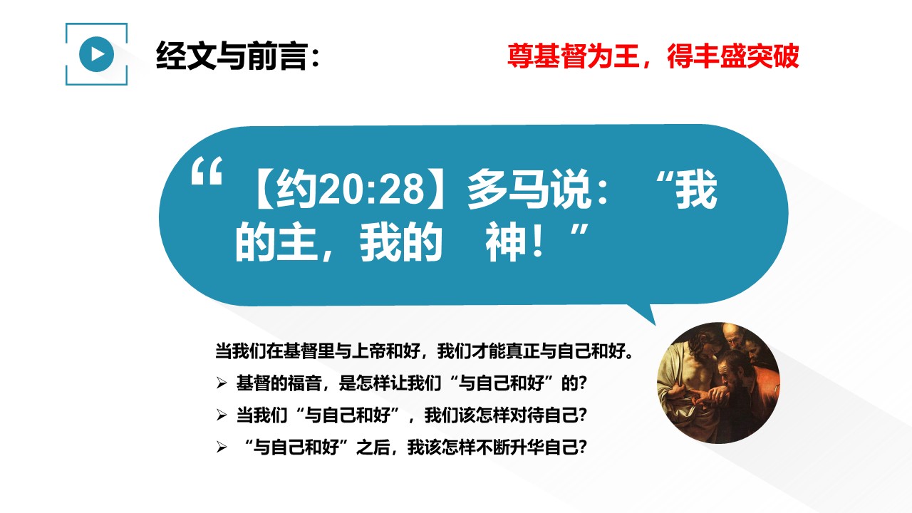 而“ 神人和好”的第一个重要结果,就是我们真正能“与自己和好”
