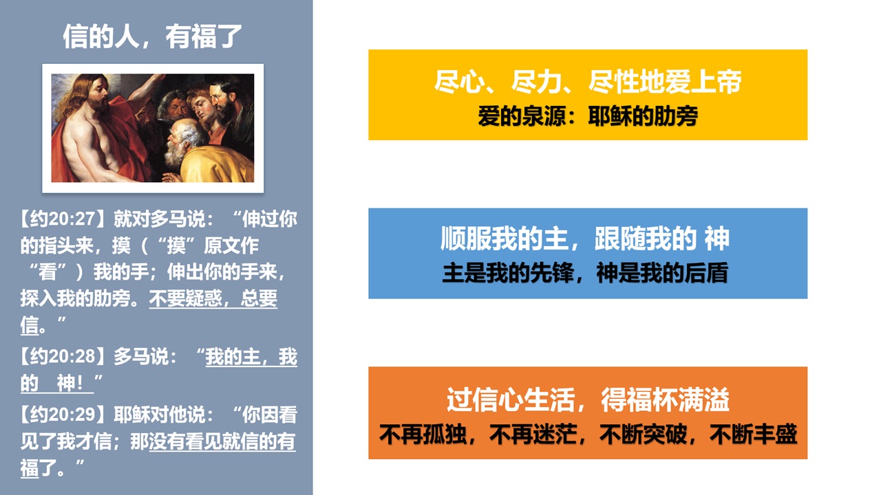 并因你的真理,信心更坚定,活在基督里,为基督而活,成为有福音使命感的门徒,坚定跟随主基督。