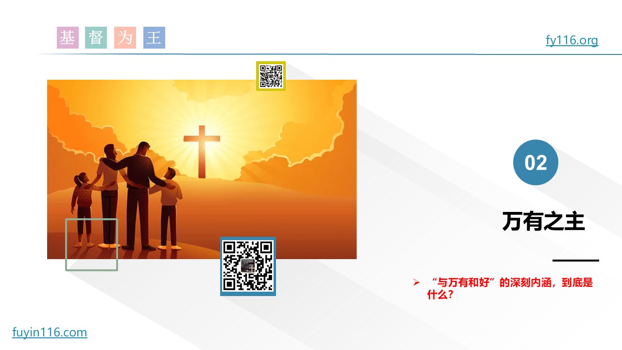 基督来了,让“ 神人和好”,让我们真正“与自我和解”,也带来了我们与“万有和好”。