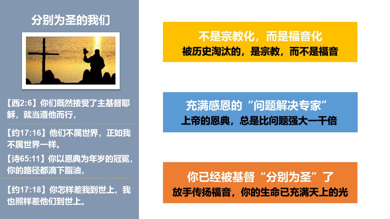 让我们更认识福音的大能,更注重与主同行、与神相交的生命建造,更勇敢为主作见证。