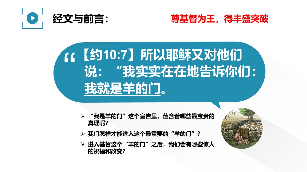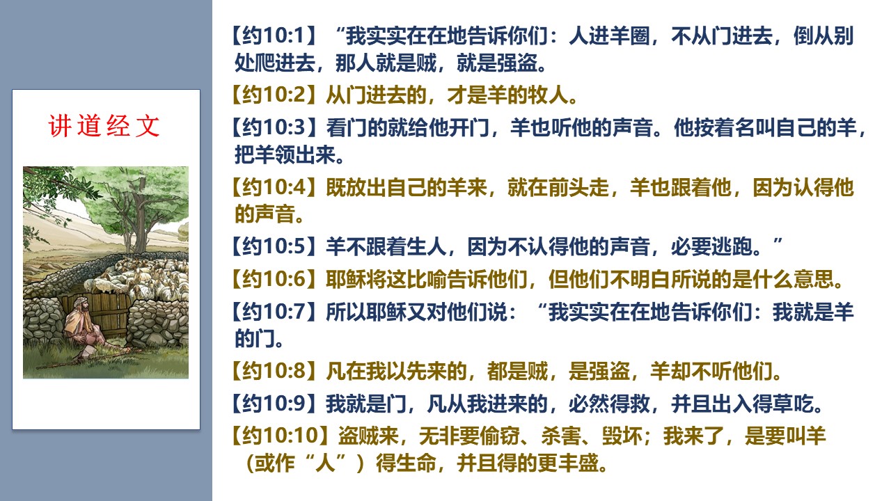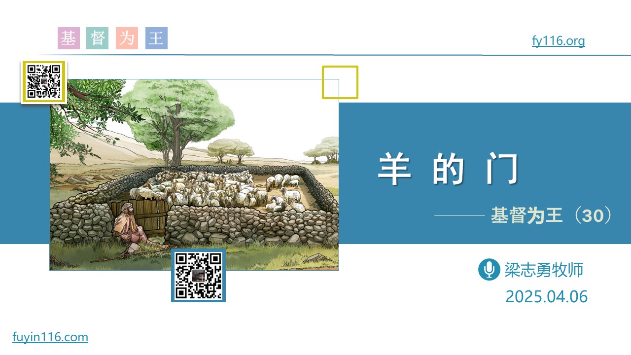 主耶稣对门徒说,“我就是羊的门”。