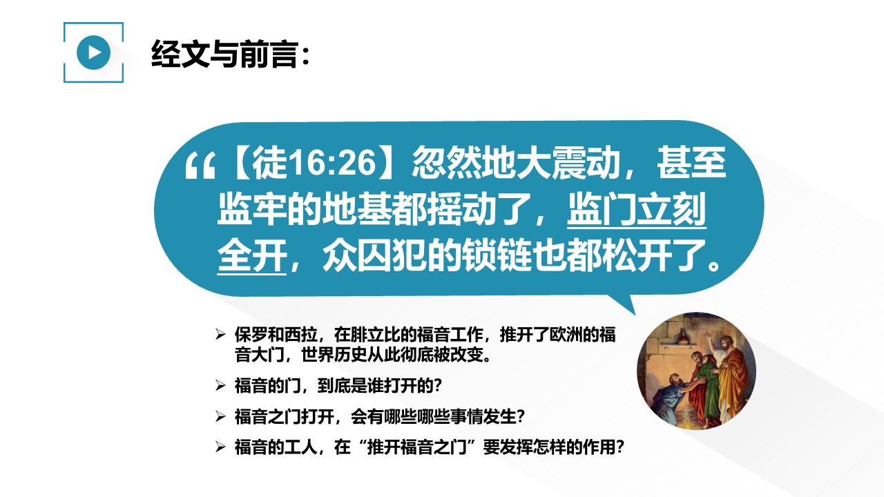 保罗和西拉,在腓立比的福音工作,推开了欧洲的福音大门,世界历史从此彻底被改变。