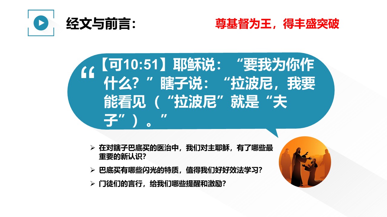 在对瞎子巴底买的医治中,我们对主耶稣,有了哪些最重要的新认识?