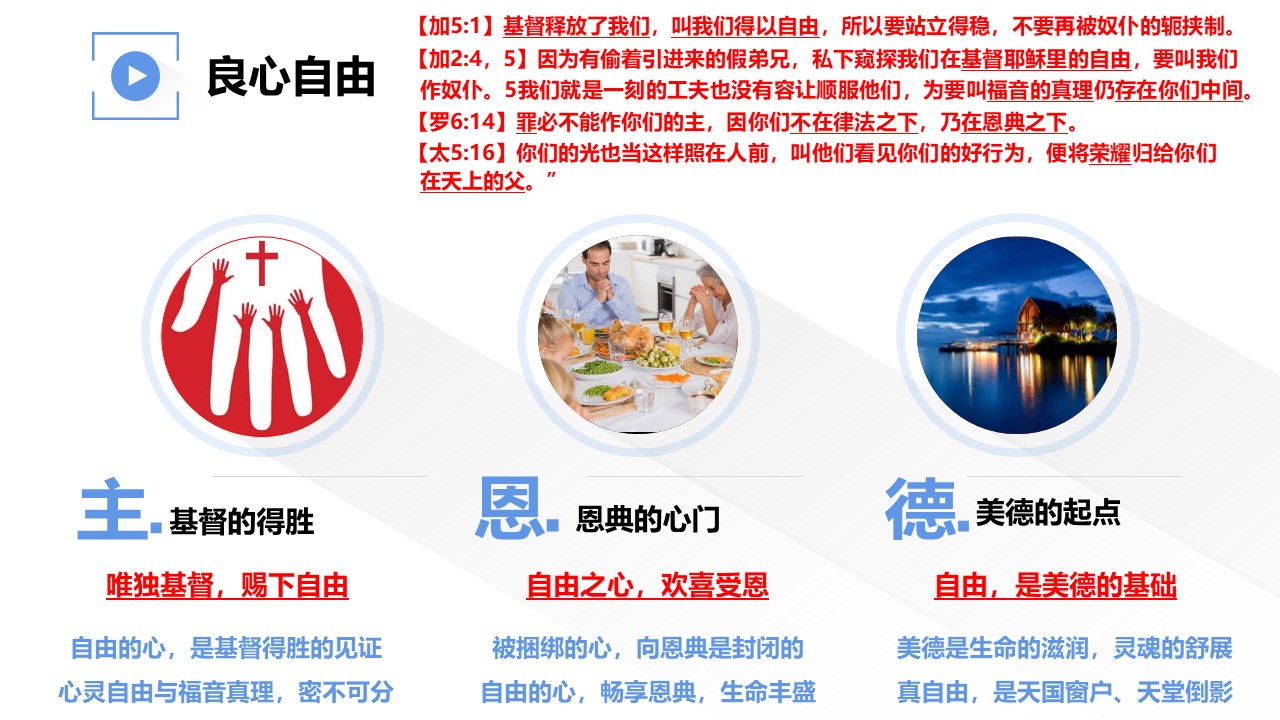 良心自由与福音、恩典和美德,分别有何重要关系?