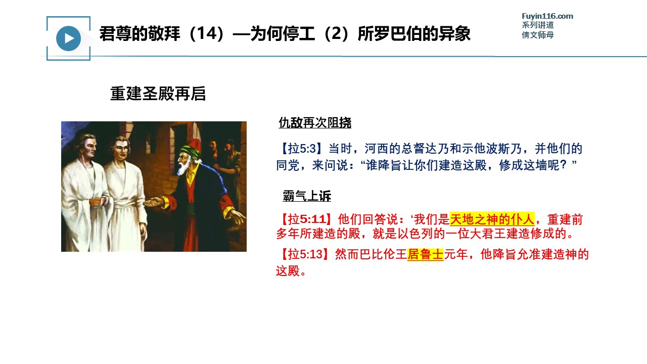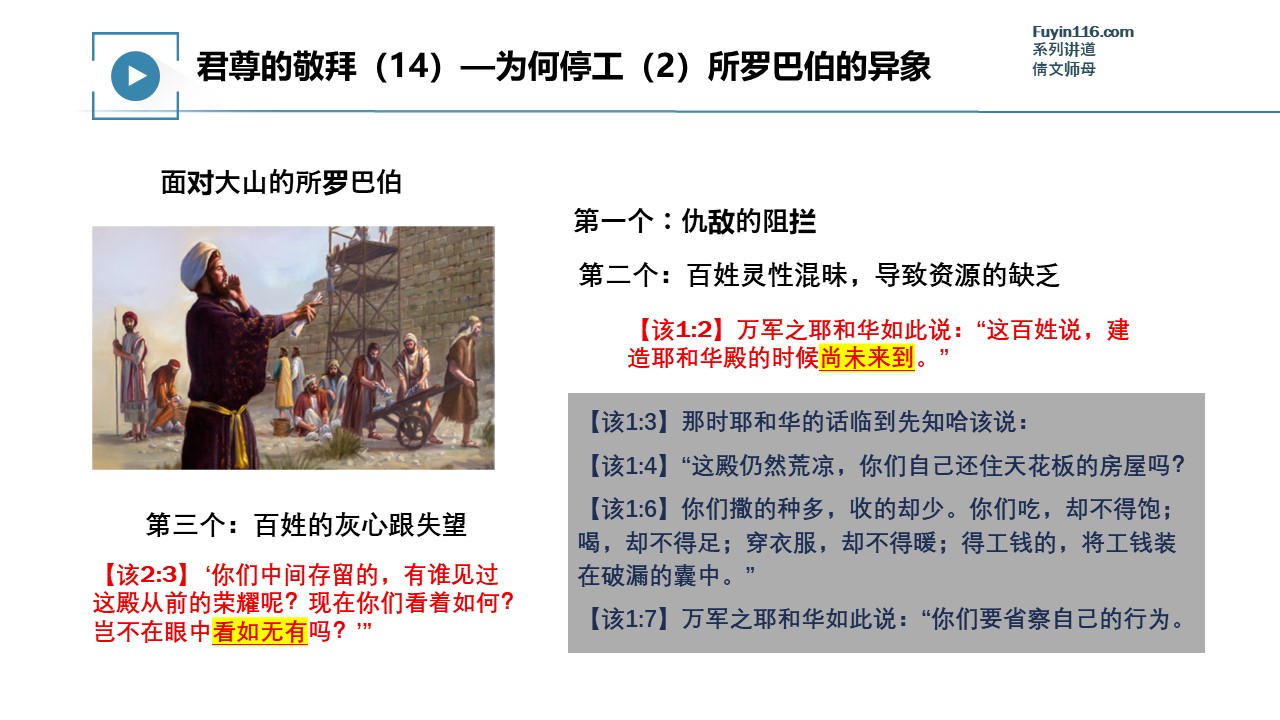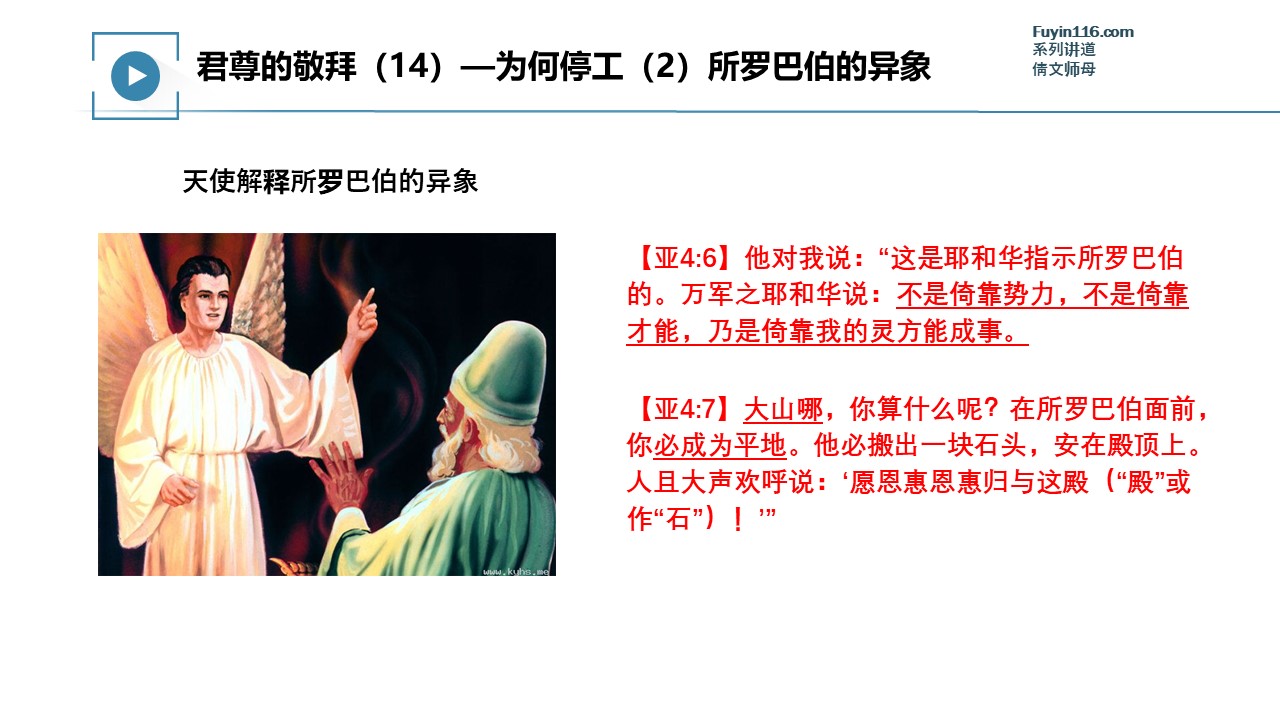 上帝为了激励祂的百姓重新建造,特别赐下了“所罗巴伯的异象”