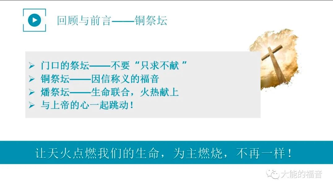 今天分享的是《出埃及记》30章有关“金香坛”和“洗濯盆”的内容。