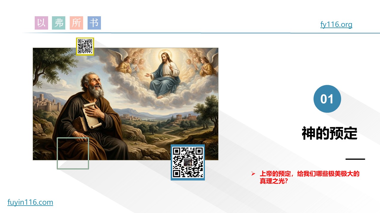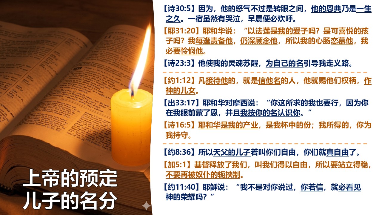 《以弗所书》一开篇,圣徒保罗就讲到“上帝预定我们,得儿子的名分”这个荣耀的真理。
