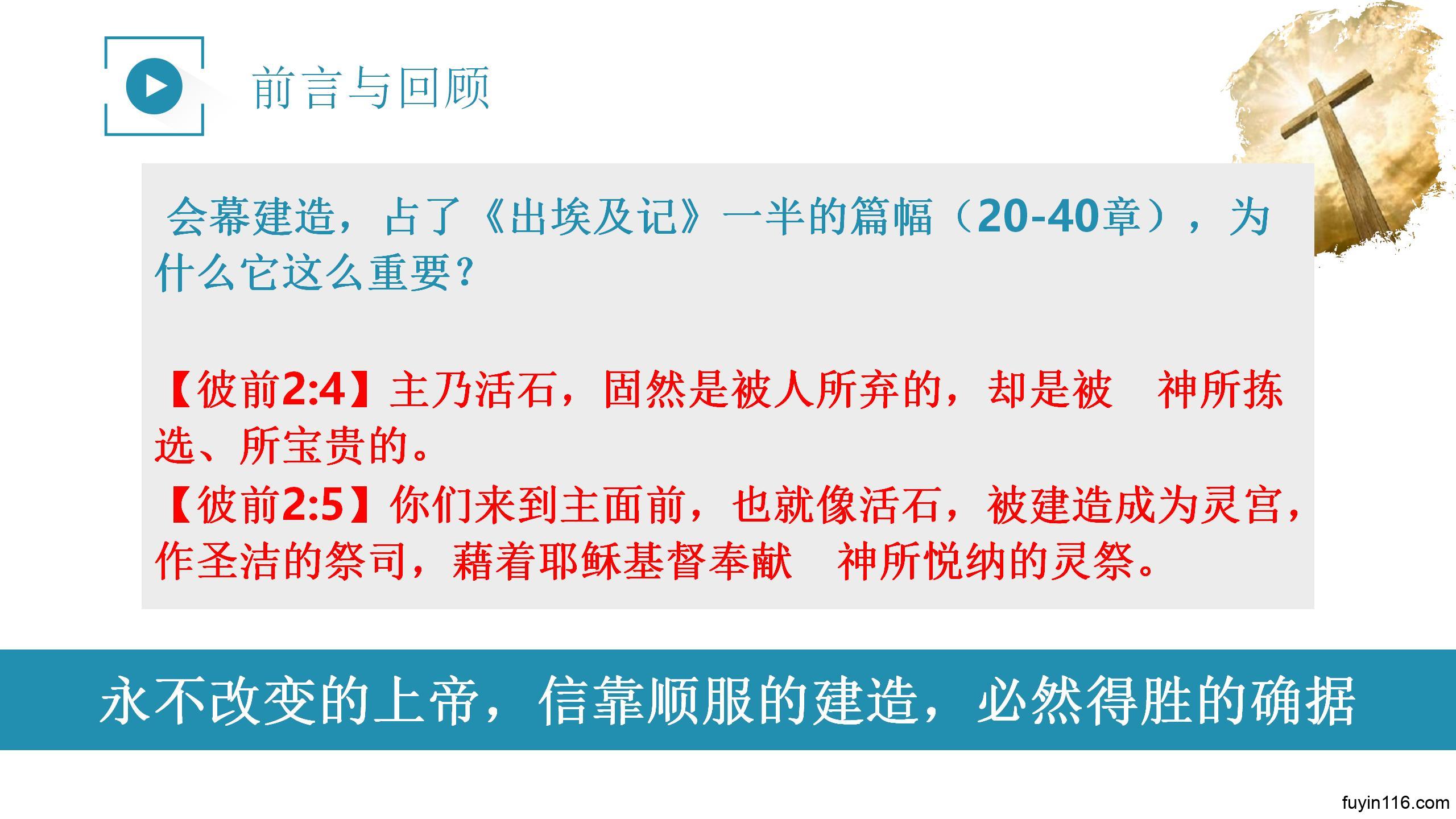 让我们从“会幕的建造”中学到宝贵的福音真理,更爱基督的教会,更凭信心参与教会的建造。