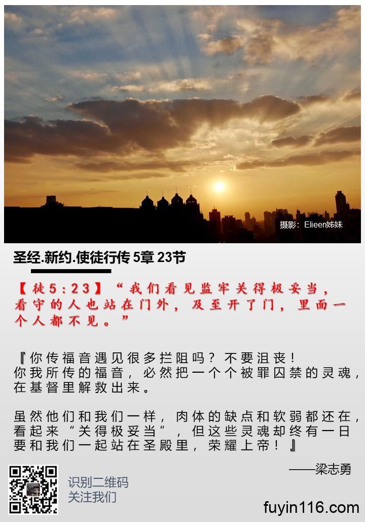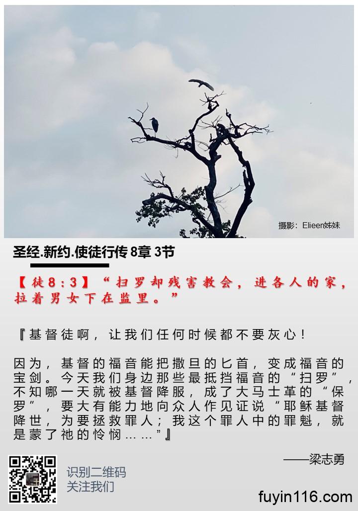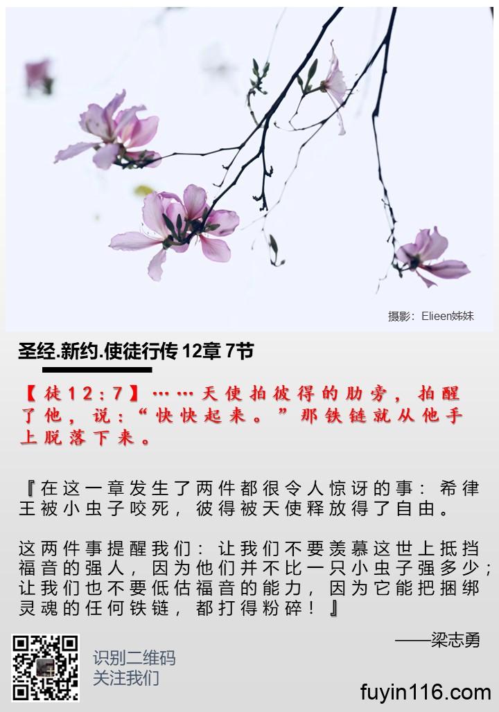 【徒12:7】……天使拍彼得的肋旁,拍醒了他,说:“快快起来。”那铁链就从他手上脱落下来。 《谁能捆绑福音的使者呢?》 作者:梁志勇牧师 朗诵:倩文师母 谁能捆绑福音的使者呢? (梁志勇) 【徒12:7】……天使拍彼得的肋旁,拍醒了他,说:“快快起来。”那铁链就从他手上脱落下来。 希律为了讨好犹太人,残害教会,并把彼得关入监牢。但奇妙的事情发生了,天使来释放了彼得。随后,骄横的希律却被虫咬死。 使徒行传12章记载的这两件事情的对比是如此强烈,应该引起我们深刻的思考。 你看希律的结局,就要知道,这世上的…