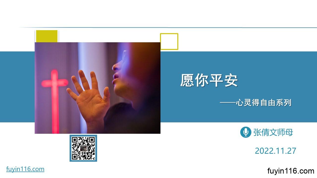 在11月27日,我们有一次特别的主题分享: 《愿你平安》 在今天,我们特别需要知道,平安何处来? 谁能带给我们平安? 欢迎您跟着我们的文章的提示,收听我们的录音录像,愿上帝的祝福借着祂的真道,更多地临到每一个认真聆听的灵魂。 您也可以点击下面的链接,重温之前的信息: 《争战得地》系列 点击音频媒体前面的小三角“►”就可以播放 我们的阿爸天父,感谢赞美你 感谢你赐给我们《圣经》真理,让我们可以领受你恩典和真理的祝福。 我们特别感谢你,赐给我们主基督;若没有主基督,我们所做的一切都毫无价值。…
