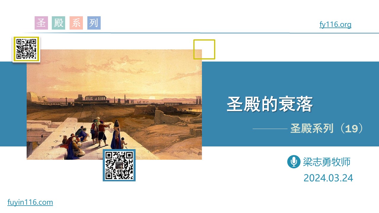 神圣宏伟的圣殿,上帝为何许可它衰落,乃至被彻底拆毁? 圣殿的衰落,向我们揭示了哪些重要的真相? 圣殿的衰落,对今天的教会,启迪了哪些重要的真相?   愿上帝的祝福借着祂的真道,更多地临到每一个认真聆听的灵魂。 欢迎您收听: 《圣殿的衰落》 https://lms116.me/zxtt 您也可以点击下面的链接,重温之前的信息: 《圣殿系列》 ⚠️⚠️⚠️ 注意 ⚠️⚠️⚠️ 因为微信会有较严苛无理的屏蔽做法,所以我们网站的文章,经常会出现在微信里无法正常打开的情况。 遇到这种情况,大家不用慌,只要在微…