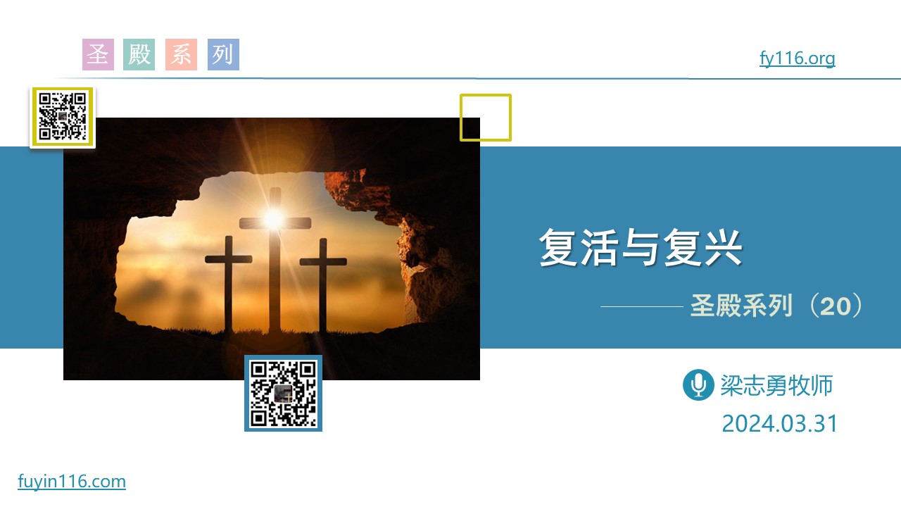 3月31日是一个重要的节日,而且不仅是基督徒的,也是全世界最重要的节日——复活节,我们要分享的主题是: 《复活与复兴》 “基督的复活”这个历史事件,到底有何意义? 基督的复活,与圣殿的重建复兴,有什么关系? 将近两千年前的复活,对今天的我们,有何重要影响?   愿上帝的祝福借着祂的真道,更多地临到每一个认真聆听的灵魂。 欢迎您收听: 《复活与复兴》 https://lms116.me/aw4q 您也可以点击下面的链接,重温之前的信息: 《圣殿系列》 点击下面链接,推荐收听:《因信称义系列》 第16、…