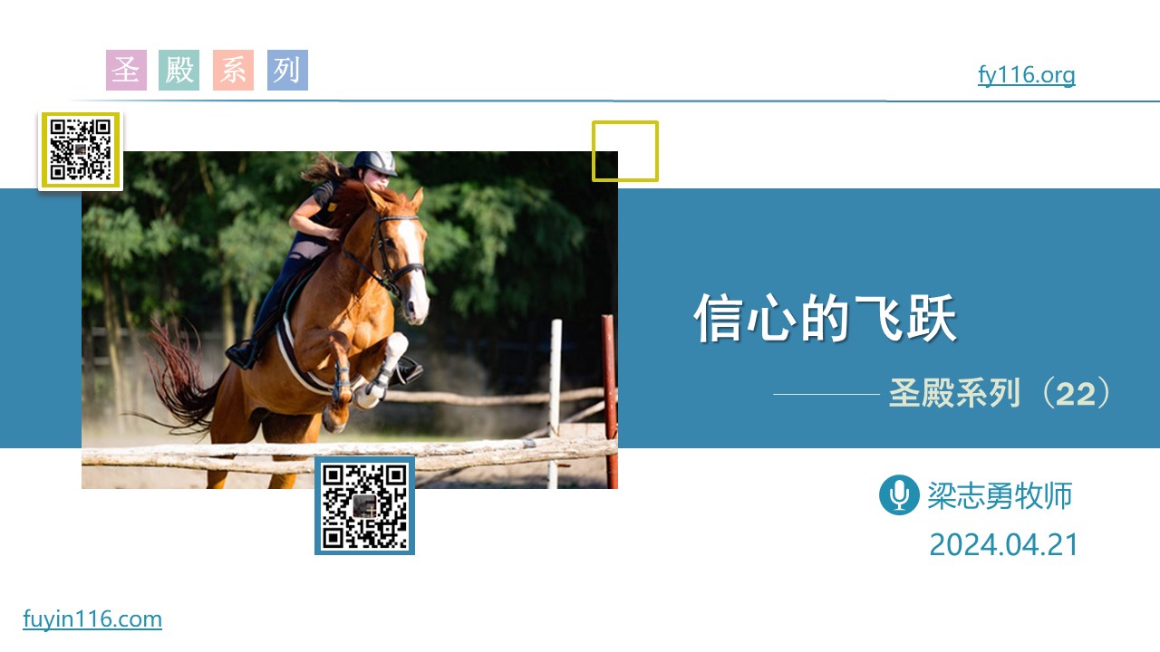 当我们抬头看见《天上的宝座》之后,我们要被天上的异象所激励,更用心建造主的圣殿。 我们要建造主的圣殿,最重要的,到底是什么? 卓越的建殿工人,要有哪三个“信心的飞跃”? 最卓越的信心,要落实在哪里?   愿上帝的祝福借着祂的真道,更多地临到每一个认真聆听的灵魂。 欢迎您收听: 《信心的飞跃》 https://lms116.me/npa9   您也可以点击下面的链接,重温之前的信息: 《圣殿系列》 特别推荐信息: 争战得地(16)跨过约旦河 祭坛系列(8)基甸的祭坛 以利亚(11)门徒三站 …