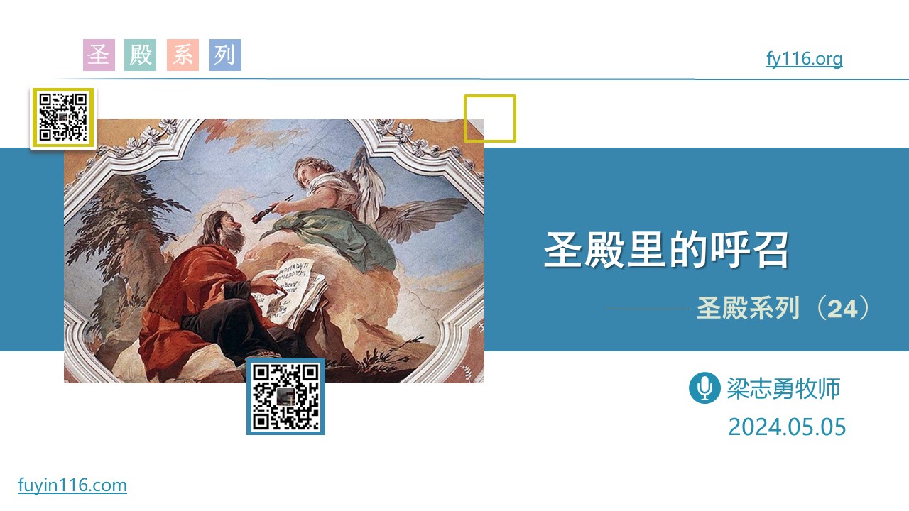 当我们进入圣殿,最重要的看见是什么? 在先知以赛亚身上,我们又有哪些重要的看见? 对今天的我们,上帝的呼召是什么?   愿上帝的祝福借着祂的真道,更多地临到每一个认真聆听的灵魂。 欢迎您收听: 《圣殿里的呼召》 https://lms116.me/m7d1 您也可以点击下面的链接,重温之前的信息: 《圣殿系列》 ⚠️⚠️⚠️ 注意 ⚠️⚠️⚠️ 因为微信会有较严苛无理的屏蔽做法,所以我们网站的文章,经常会出现在微信里无法正常打开的情况。 遇到这种情况,大家不用慌,只要在微信对话或朋友圈,找到我们这篇…