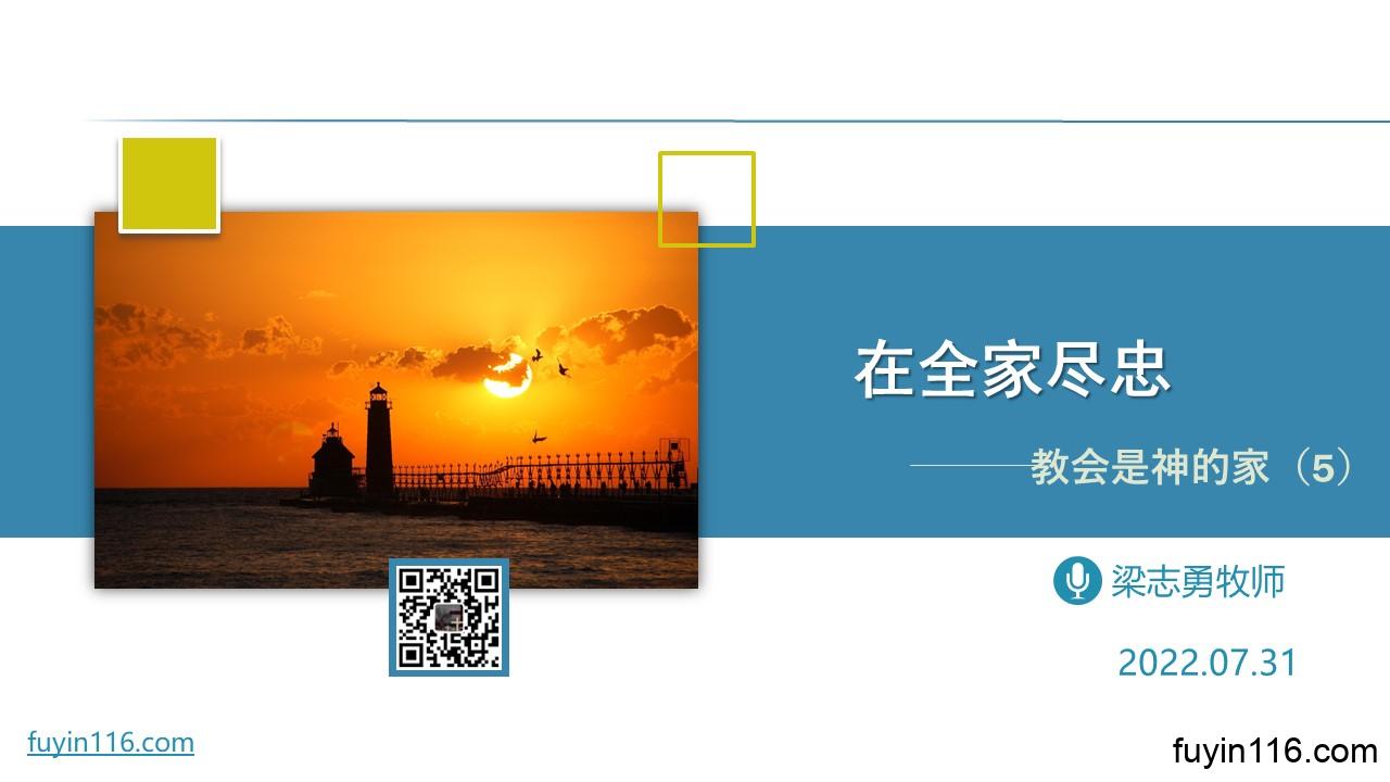 在7月31日,我们继续分享《教会是神的家》系列信息的第五讲: 《教会是神的家(5)在全家尽忠》 忠心,为什么这样重要,成为摩西和主基督共同的特征,被上帝所夸赞? 我们该怎样在神的家中尽忠? 在神的全家尽忠之人,有什么指望? 您也可以点击下面的链接,重温之前的信息: 《教会是神的家(1)“神的”家》 《教会是神的家(2)神的“家”》 《教会是神的家(3)渐成主殿》 《教会是神的家(4)神家里的人》 点击音频媒体前面的小三角“►”就可以播放 : 主题: 主日讲台(新) 日期: 2022年7月31日 08:…