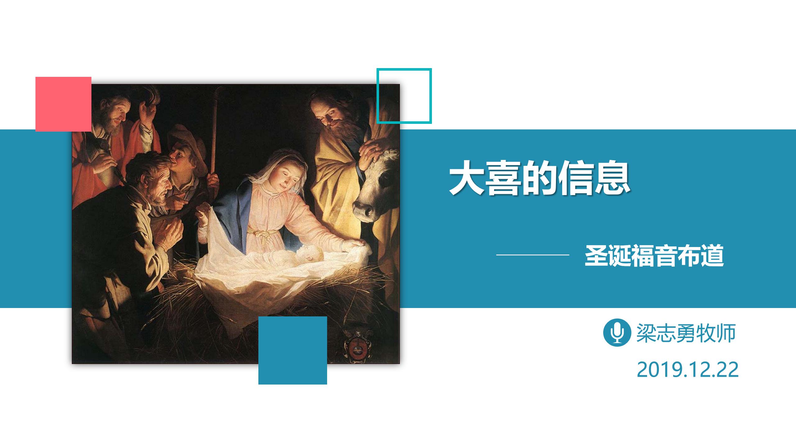 这是我们2019年圣诞节福音布道会的讲道。 在2023年圣诞前夕再发出来,希望能帮助所有读者重温“耶稣基督降生的伟大真理”; 盼望这篇信息,能激励基督徒勇敢传福音; 也能帮助还未认识基督的朋友们,认识这位最伟大的救主,让这个”大喜的信息“成为落实在你生命中的现实。 为什么耶稣的降生,连天使也要说这是“大喜的信息”? 耶稣为何又被称为“马槽圣婴”? 耶稣降生在小城伯利恒,这有什么特别的意义? 耶稣的降生,和两千多年后的你我,有什么关系? 请听: 《大喜的信息》 https://lms116.me/…