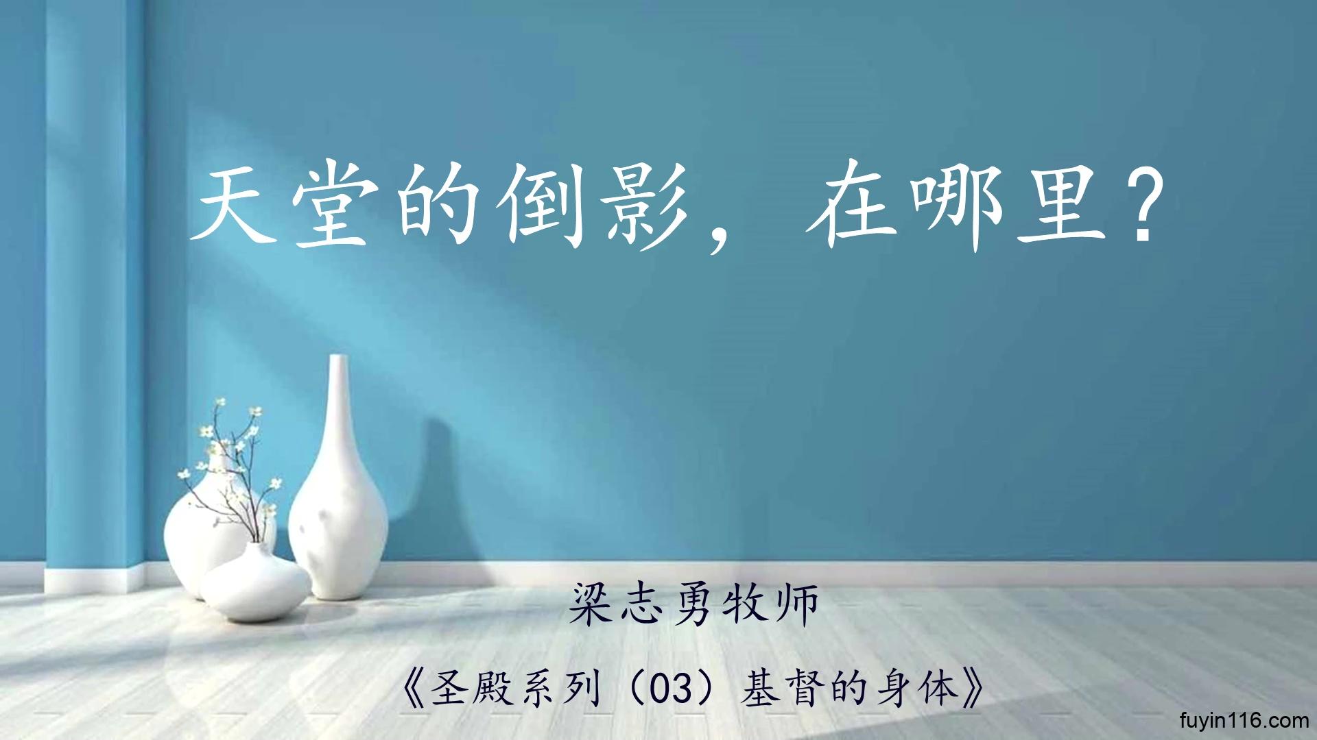 展开或收起内容要旨,请点下面圆圈里的“十”↓↓↓   我们相信,你看到我们这篇讲道剪辑《天堂的倒影,在哪里?》,绝不是偶然,而是上帝精心安排的结果。 上帝知道你都自己的“人生道路”感到迷茫,你渴望有一个荣耀的人生,而不是让自己的人生“庸庸碌碌,苟苟且且”,最后归于尘土。 你看到这个世界,有太多的悲惨,你也感受到很多人的人生,包括你自己的人生,似乎也无法脱离这些悲惨的结局。   上帝顾念你,愿意把你从这种无奈和苟且中拯救出来,让你的人生,不再是“悲惨世界”的缩影,而成为“天堂的倒影”…