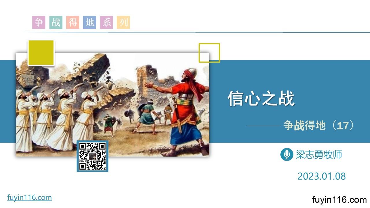 在1月8日,我们将继续《争战得地》系列的分享,第17讲: 《信心之战》 以色列人征服迦南地的第一场战斗,是在哪里发生的? 为什么这一仗,我们称它为“信心之战”呢? 这场“信心之战”对今天的我们,有何重要启发呢? 欢迎您跟着我们的文章的提示,收听我们的录音,愿上帝的祝福借着祂的真道,更多地临到每一个认真聆听的灵魂。 您也可以点击下面的链接,重温之前的信息: 《争战得地》系列 《新天新地、新圣城》 《圣诞专题:平安何处来?》 点击音频媒体前面的小三角“►”就可以播放 了。 &n…