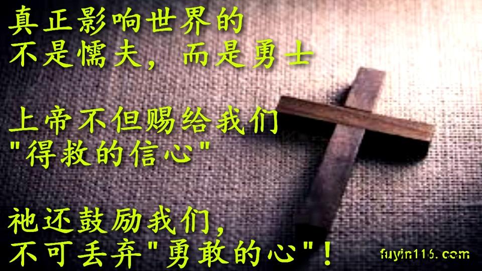 节选自:《我们的信仰(4)最勇敢的信仰》 以上讲道剪辑的文字内容,请点击下面链接: 《为何勇敢很重要》