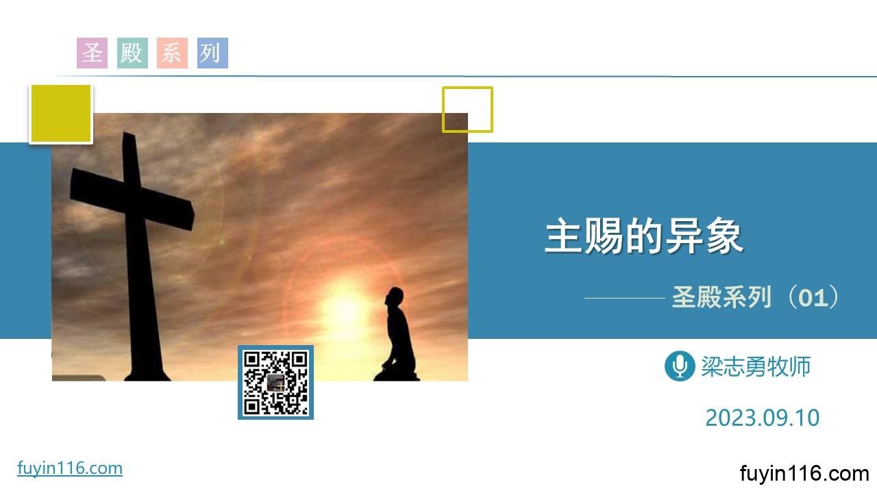 展开或收起内容要旨,请点下面圆圈里的“十”↓↓↓   《圣殿系列(01)主赐的异象》 《福音布道》系列 《争战得地》系列 《福音观影会》系列 《旧约里的福音》系列 《祭坛系列》讲道 《因信称义》系列讲道(更新中) 《希伯来书》系列讲道(全) 《出埃及记》系列讲道(全) 《讲道信息》汇总 《梁牧清风》圣经默想 《五饼二鱼》讲道剪辑