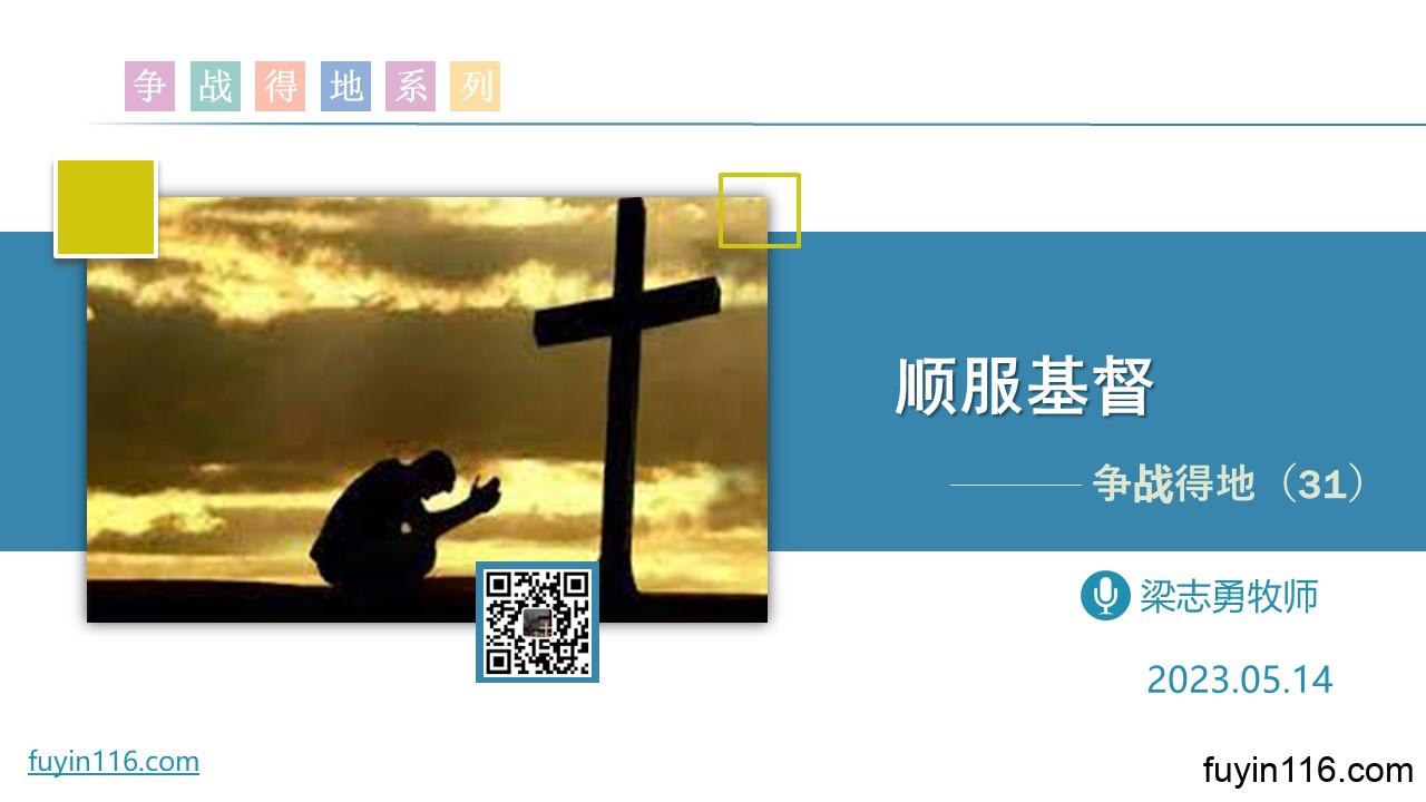 在5月14日,我们继续《争战得地》系列的分享,第31讲: 《顺服基督》 为何我们要顺服基督? “顺服基督”深刻内涵和意义,是什么? “顺服基督”与“争战得地”有何关系? 愿上帝的祝福借着祂的真道,更多地临到每一个认真聆听的灵魂。 欢迎您收听我们的录音: 《顺服基督》 您也可以点击下面的链接,重温之前的信息: 《争战得地》系列 点击音频媒体前面的小三角“►”就可以播放: 墙外观看: 我们的阿爸天父,感谢赞美你 感谢你赐给我们《圣经》真理,让我们可以领受你恩典和真理的祝福。 …