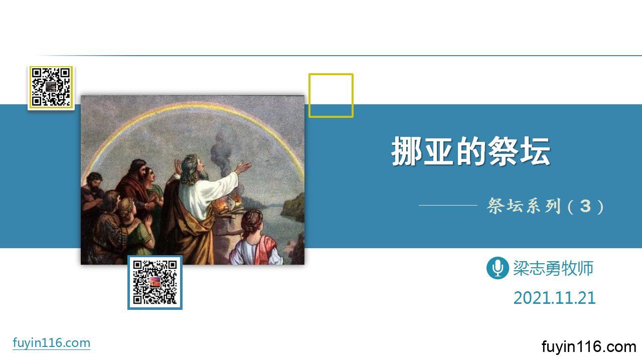 【创8:20】挪亚为耶和华筑了一座坛,拿各类洁净的牲畜、飞鸟献在坛上为燔祭。 “祭坛”这个主题,是贯穿整本圣经,从《创世记》,直到《启示录》。 很多人都知道“挪亚方舟”,但你知道挪亚离开方舟之后做的第一件事情是什么吗? 为什么一出方舟,挪亚一家就要献祭呢? 挪亚的祭坛,蕴含着哪些重要的真理? 挪亚的祭坛,给我们哪些重要启迪? 欢迎收听《我们的信仰》系列,第03讲 《挪亚的祭坛》 点下面的小三角“►”就可以播放录音了: 主耶稣基督,感谢赞美你 感谢你赐给我们《圣经》真理,让我…