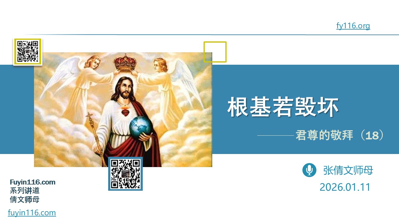 诗篇11篇里说“根基若毁坏,义人还能作什么呢?” 义人的根基,到底是什么? 该隐和亚伯,两人的生命本质区别,到底是什么? “因信称义”与“彼此相爱”,有何密切关系?   愿上帝的祝福借着祂的真道,更多地临到每一个认真聆听的灵魂。 欢迎您收听: 《根基若毁坏》 更多精彩丰富的内容,尽在lms116.me;欢迎在浏览器里收藏访问我们的网站,不受微信的限制 本文链接: https://lms116.me/a7ph 您也可以点击下面的链接,重温之前的信息: 《君尊的敬拜系列》 ⚠️⚠️⚠️ 注意 ⚠️…